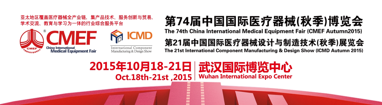 醫療器械界萬眾矚目的第74屆中國國際醫療器械博覽會-2015CMEF武漢秋季醫療器械展會,將于2015年10月18-21日在武漢國際博覽中心舉辦。屆時有來自20多個國家的2600余家醫療器械生產企業和超過100多個國家和地區的150000人次的政府機構采購、醫院買家和經銷商匯聚CMEF交易、交流匯聚于此,場面盛大壯觀,值得期待。