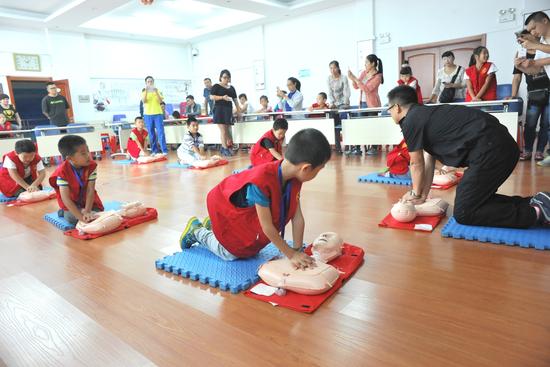 4日上午,晨報30余名小記者來到黑龍江省急救中心,參觀120急救指揮調(diào)度中心,在心肺復蘇模擬人上學習心肺復蘇技能。