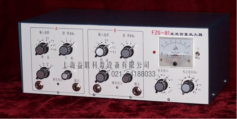 FAG-81型晶體管放大器是雙路直流低聲放大器。由于采用了進口場效應對管,使漂移和共模抑止比等指標大為改進,噪聲也降到了10μV以下(100KHz帶寬時),適合于作為生物電前級放大器使用,亦可應用于其它需要放大微弱信號的各種科研項目中。 放大倍數:20,100,200,和1,000四檔 □共模抑止比:>30,000(<10KHz時) 漂移:<100μV/小時 □輸入線性范圍:500mV (20倍時) 噪聲:<10μVp-p(100KHz帶寬時) 100mV(100倍時) ------<5μVp-p(10KHz帶寬時) 50 mV(200倍時) ------<2μVp-p(100KHz帶寬時) 10 mV(1,000倍時) 高頻濾波:100,10,1,0.1(KHz) □輸入阻抗:電阻1M ?,電容<100pF 低頻濾波:DC,AC(1,0.1,0.01,0.001S) |