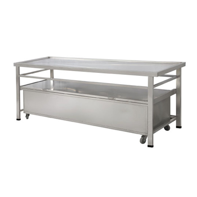該解剖臺加裝導軌及可存放兩具尸體的大儲存箱,該箱體帶有四個靜音腳輪,不占用空間,可節(jié)省實驗室的有效使用面積。