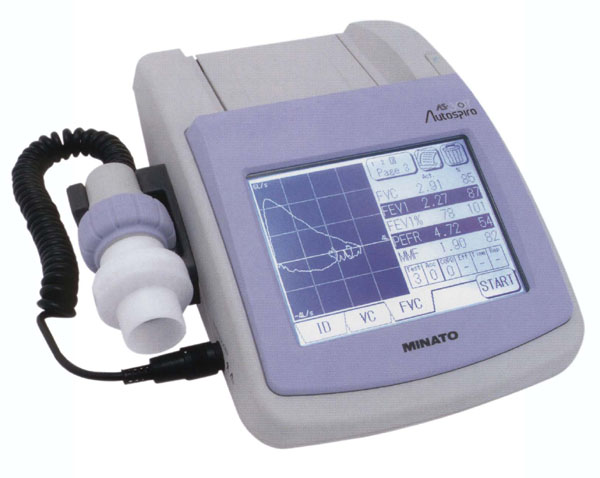 a.全部數據和曲線b.標準格式c.FVC測試的詳細數據和曲線d.標準格式和MV曲線4.全新創新設計:a.采用先進寬幅彩色液晶觸摸屏技術,顯示清晰,操作簡單;b.自動或手動載入工作環境參數;c.肺年齡參數引入到測試參數中;d.預計的流速容量環顯示;e.采用熱敏打印,打印速度比以前快3倍,更快、更安靜;f.采用GOLD(2003年版)對COPD的病期分類;g.采用日本呼吸學會對肺功能儀的精度管理指導和美國(ATS)質量控制;h.先進的防止交叉感染技術;i.操作界面多語言選擇。