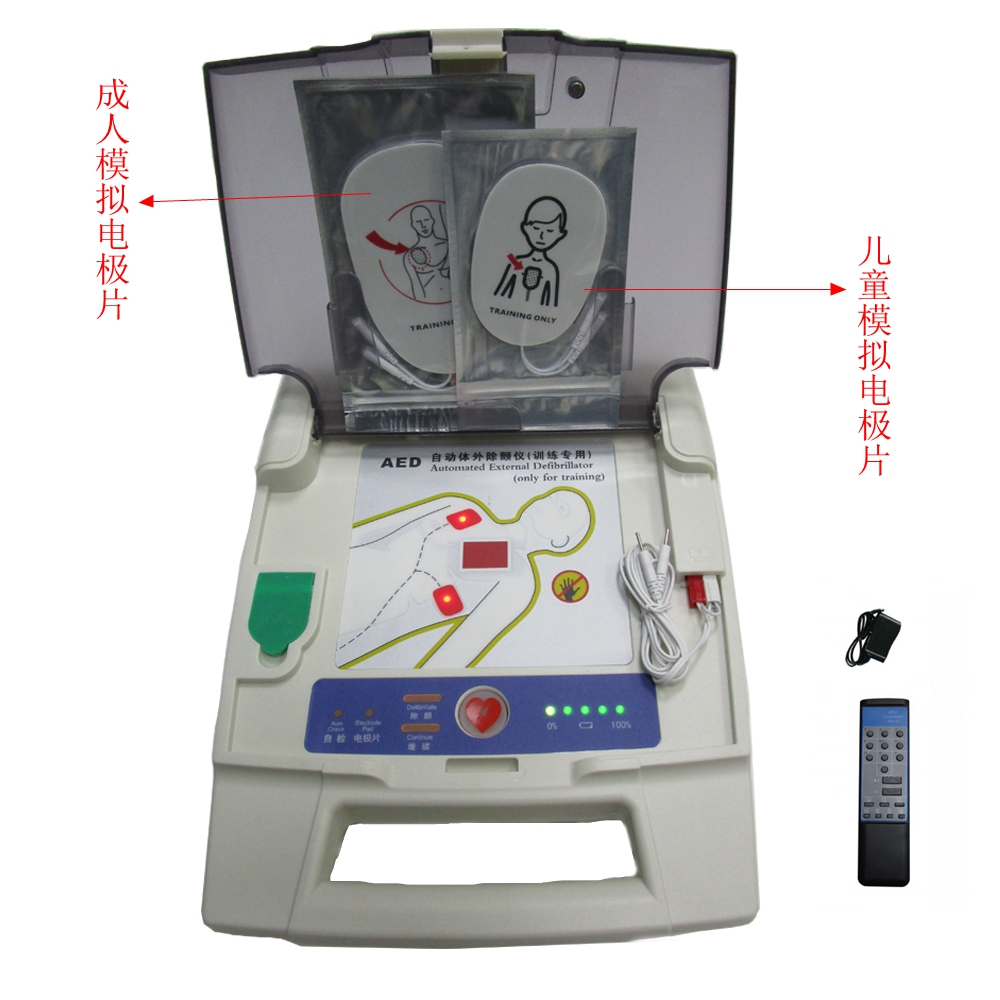模擬急救現(xiàn)場AED的工作流程,但無高壓電擊除顫工作,全程中文語音提示。