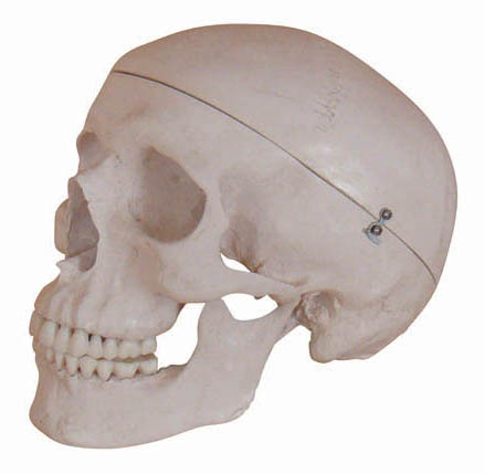 這款頭骨模型接近于真人頭骨,分成三部分。