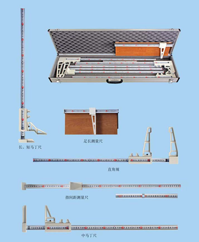 本套測(cè)量尺可根據(jù)人體不同形態(tài)而通用。用于測(cè)量人體身高、坐高,臂伸、腿長(zhǎng)、小腿長(zhǎng)、肩寬、上肢等。