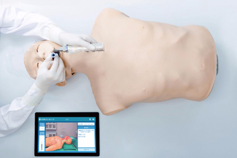 氣管插管智能模擬訓練系統是我公司研發的用于成人經口氣管插管操作訓練的產品,包含模擬人和手機軟件兩大部分。模擬人皮膚及軟組織的材質環保耐用、彈性好、觸感真實,具有解剖標志準確、形態逼真、外形美觀等特點,可進行經口腔氣管插管技術的教學、訓練和考核;軟件可控制模擬人的相關參數,實時監測操作過程中插管位置、深度等參數,并配有相關檢測的動畫提示、詳細文字提示以及報警提示。此外,本系統軟件還包含了豐富的教學內容。適用于醫護院校的學生,初級臨床醫護人員、各類現場急救人員培訓。