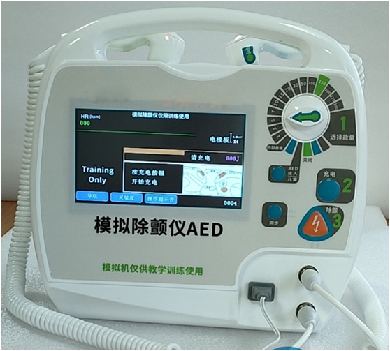 16.模擬電除顫儀正面有彩色屏幕,可直觀展示急救流程及動畫演示。